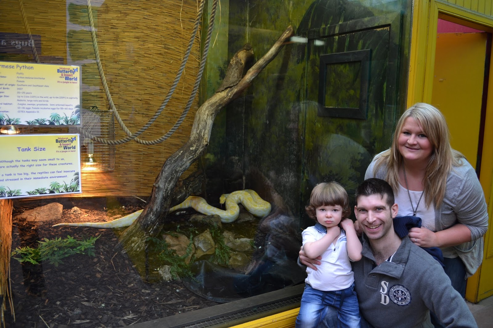 Day one. Thursday morning leaving the house at 430am to get the ferry 730. Arrived at 630am and Dad got a text message from Stenaline, boat delayed until 9am :-( It was a very wet and windy day but we popped into the terminal for a coffee. Harry had a look around. 8am and we got back out into the car to be ready to drive on. 850am and text from stena. The ferry was cancelled and we were now transferred to the next ferry at 1130am. Back into the terminal for a toasties and more coffee. Very unhappy. Harry was fantastic and some friendly people offered him crisps, cookies and juice. Finally on the boat at 1140am on on our bumpy trip over, Dad felt a bit sea sick and Mum and Harry took a tour of the boat and the kids play area. We arrived at 245pm and started on the long journey to the Hotel. We hit Glasgow at rush hour and made a few wrong turns because Mum and Dad were getting confused with the sat nav. Finally made it to the Hotel at 6pm. 5 hours late and very tired. We had dinner and got ready for a busy day ahead. Up for breakfast and then off to the loch lomand shores for an adventure. The day was perfect. We had a nice walk and met a man from Australia called Chris. We walked round a birds of prey centre and Mum had a look around the shops. We would go back there again. We went back to the hotel and went for a swim. It was lots of fun. During dinner we noticed that Harry was not himself and we finished quickly and went back to the room. Harry had a temperature 39. Oh dear. Calpol and neurofen all night but luckily it was helping to keep the temperature down and the next morning Harry asked to ho back to the pool so after breakfast Dad took him for a dip. We quickly packed and it was time for the trip to see Debbie. First we had a walk around the local village and a wee coffee. The trip was pretty quick. So we went to butterfly world. It was great fun. Lots of butterflies and we also saw snakes and spiders. Even watched the feeding of the snakes.
